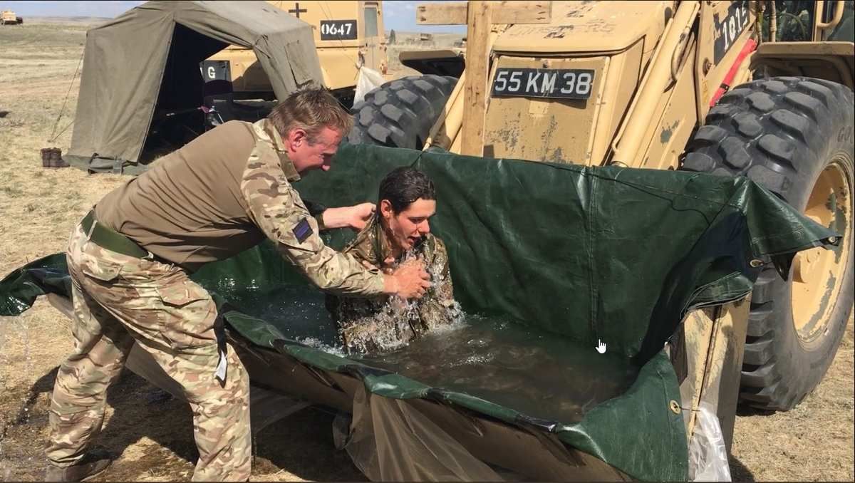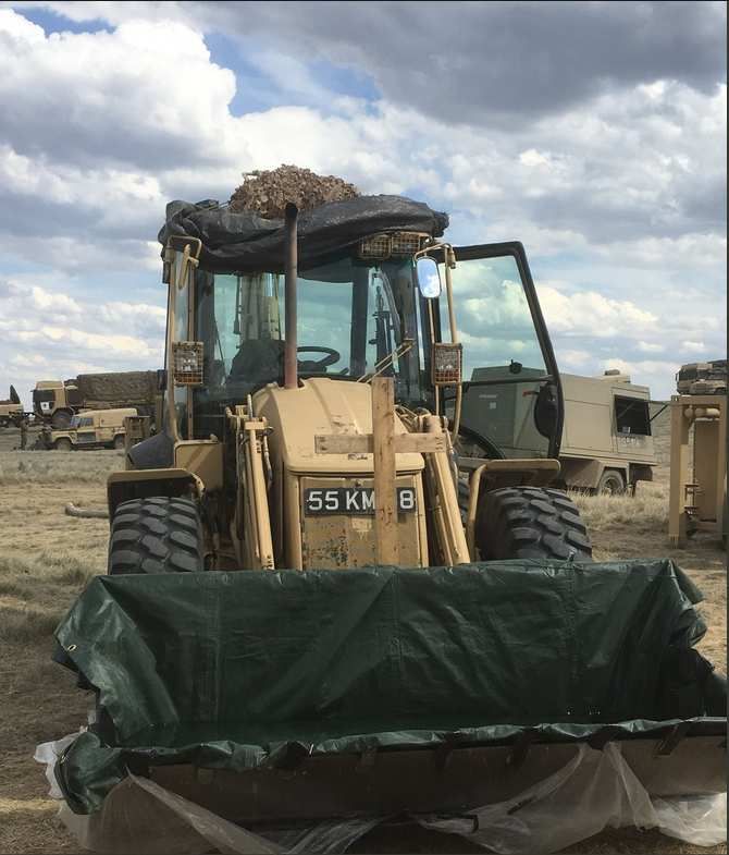 Un pasteur baptiste anglais, aumônier aux armées, Gary Birch, improvise un baptistère pour célébrer 3 baptêmes dans la pelle d'un engin de chantier au milieu d'un champ.